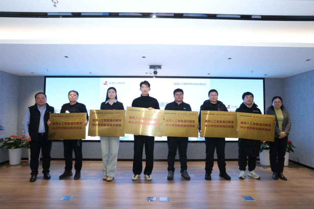 会上举行了中小学 AI 云端实验室发布仪式,并为通用人工智能通识教育中小学创新实践共同体(简称共同体)成员单位进行进行了授牌,该共同体由北京大学智能学院、北京通用人工智能研究院、中关村科学城人工智能产业专委会等单位于2025年联合发起。近一年来,共同体以“政—产—学—研—用”的协同模式,有力推动了人工智能通识教育从知识普及向创新培育的深化发展。